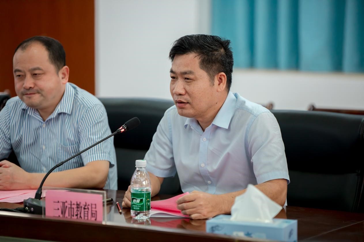 三亚市教育局职成教科主任张光志发言,他代表三亚市教育局对江苏3D+项目专家组的成员表示欢迎和感谢,望几位专家学者能根据几天的调研情况为推进三亚市社区教育工作建言献策。