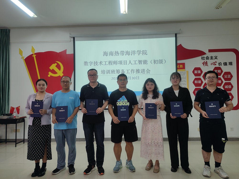 我校被人力资源和社会保障部批准为人工智能工程技术人员培训机构和数字化管理师培训机构,列入数字技术工程师培育项目第二批培训机构目录。为组织实施好人工智能工程技术人员的培训及考评工作,确保数字技术工程师培育项目取得实效,极力打造数字技术人才培育品牌。我校继续教育学院组织相关二级学院共8名教师,参加由工业和信息化部电子工业标准化研究院举办的人工智能工程技术人员(人工智能平台产品实现方向)师资与考评员培训,并经过严格考核,这8名教师均取得初级人工智能工程技术人员师资培训证书及考评员证书。