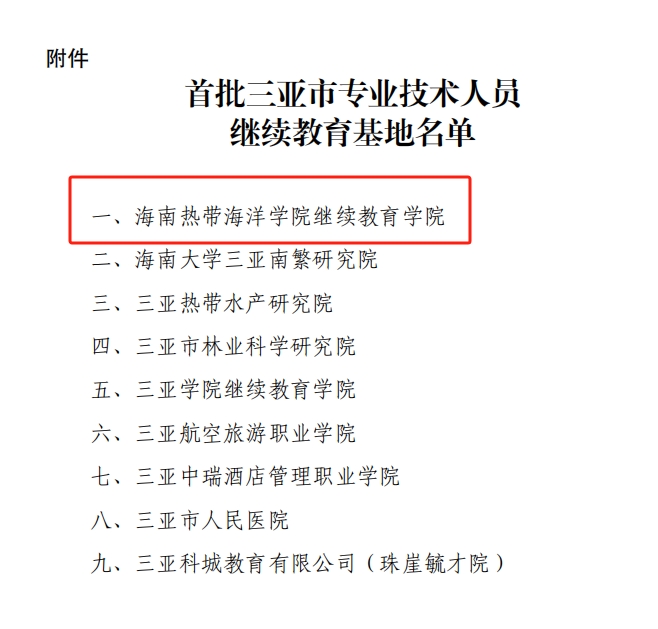 喜讯!我校继续教育学院被认定为首批三亚市专业技术人员继续教育基地